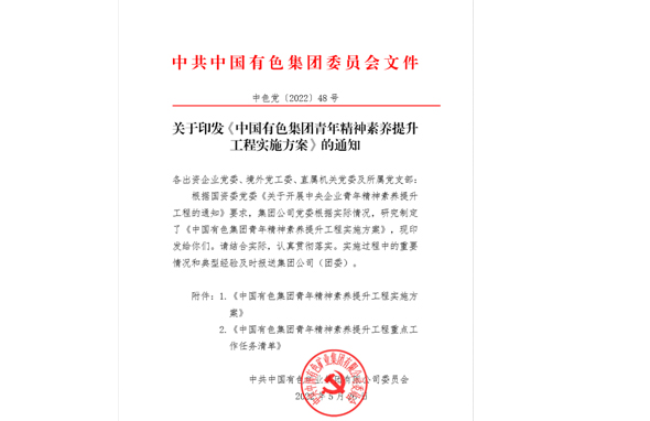 關(guān)于印發(fā)《中國有色集團青年精神素養(yǎng)提升工程實施方案》的通知
