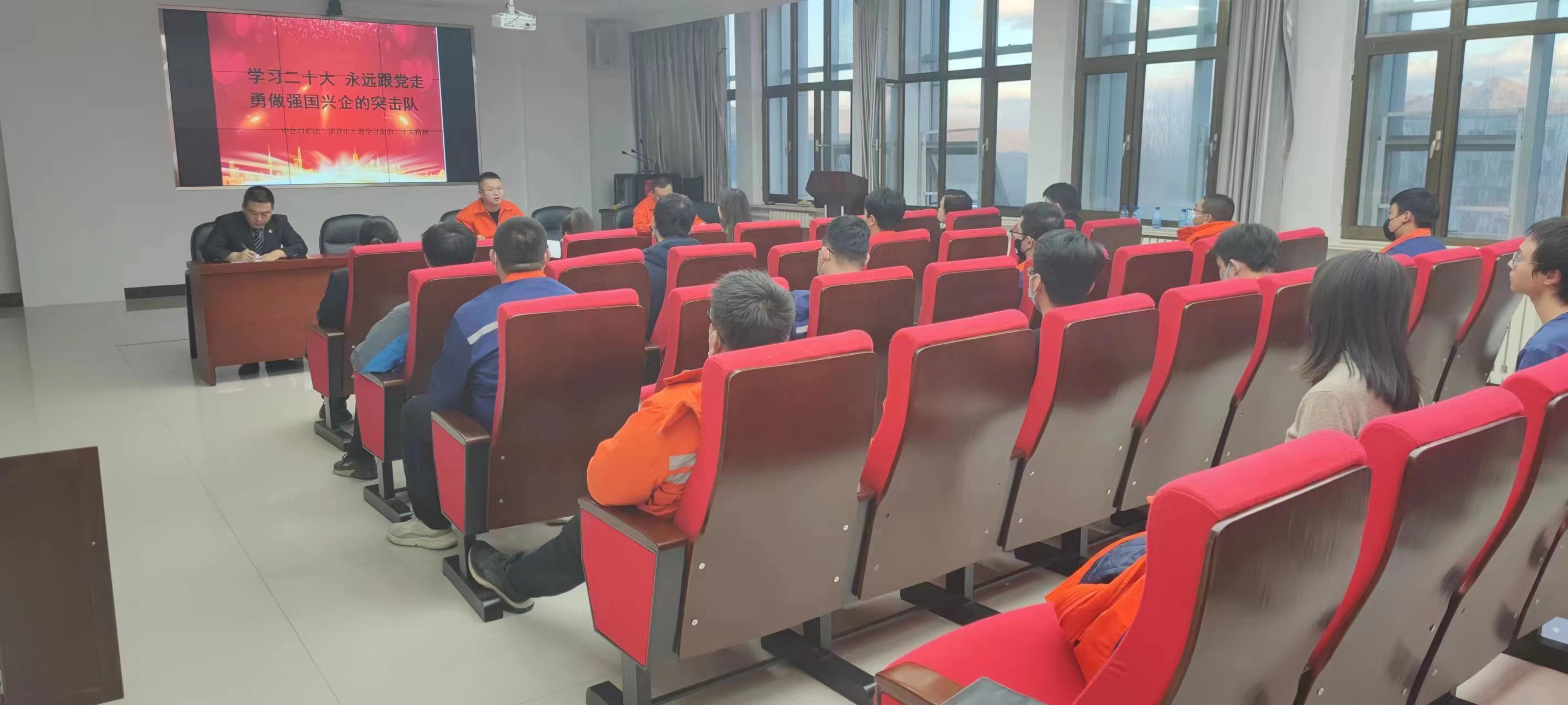 2022年10月31日,中色股份所屬中色白礦團委組織召開“學習二十大 永遠跟黨走 勇做強國興企的突擊隊”主題學習會。三個團支部23名團員青年代表參加學習,團委書記張志超主持學習會。