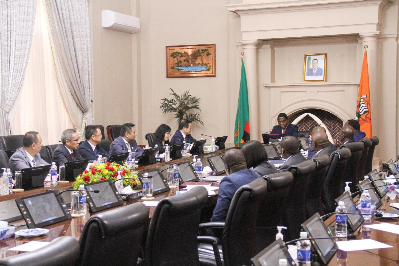 文崗首先對希奇萊馬總統和贊比亞政府長期以來給予中國有色集團的關心支持表示感謝。他介紹了盧安夏28豎井、中色非礦東南礦體和桑巴礦山等集團在贊重點項目建設情況,表達了中國有色集團對贊比亞市場的長期承諾和堅定信心。文崗表示,中國有色集團將持續加大對在贊礦業項目的投資和運營力度,堅持綠色發展理念,為促進當地經濟繁榮和民生改善作出更大貢獻;集團還將積極參與坦贊鐵路的恢復和運營,為中贊兩國在經貿和礦業領域的合作提供更加堅實的支撐。