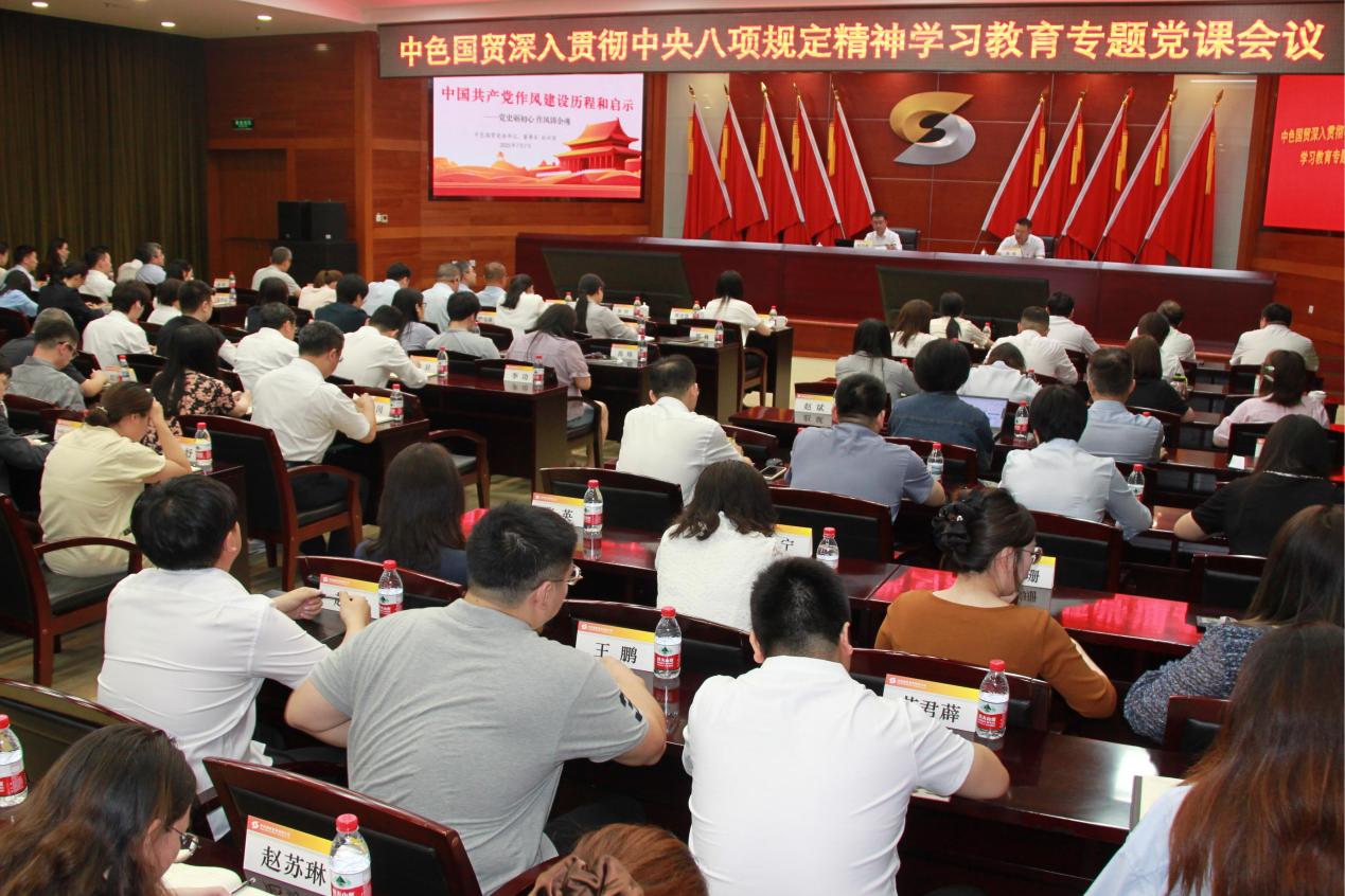 中色國貿舉辦深入貫徹中央八項規定精神學習教育專題黨課,引導廣大黨員干部職工充分認識到自身的責任和使命,持之以恒、與時俱進抓好作風建設,以優良作風護航公司高質量發展。