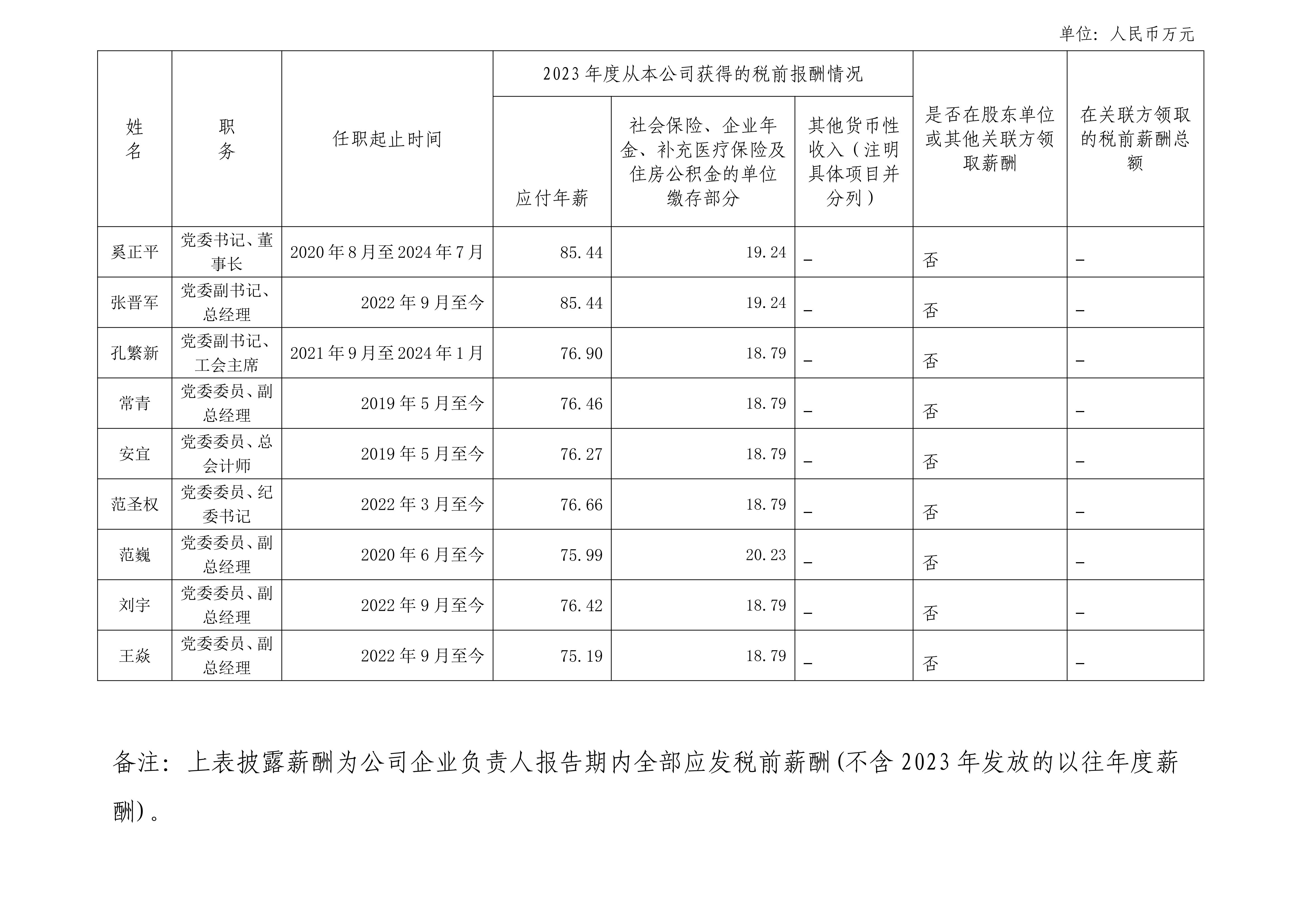 中國有色礦業集團有限公司企業負責人2023年度薪酬情況??