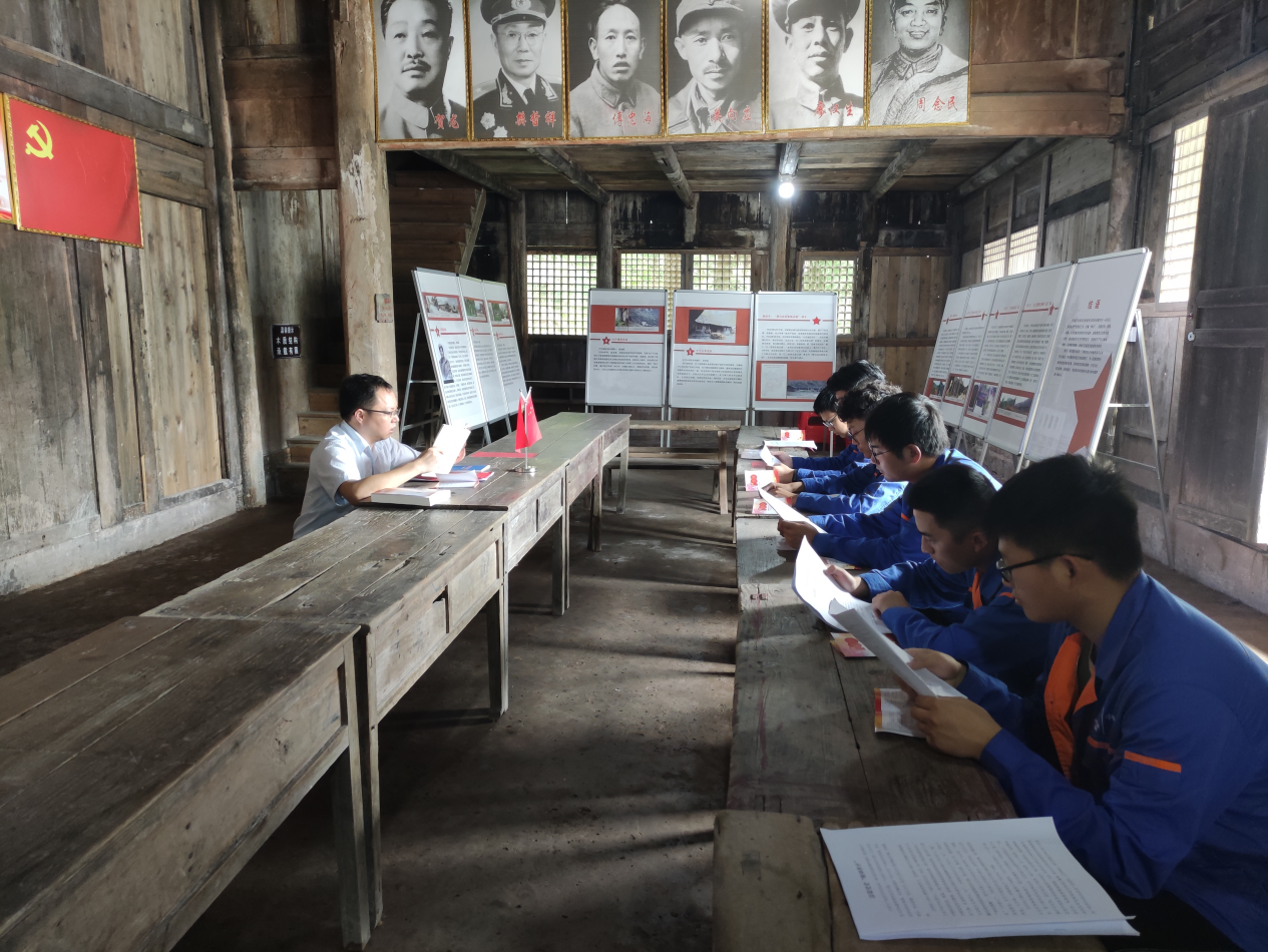 中色十五冶武漢公司項目黨支部書記在紅色教育基地為支部黨員講黨課,號召黨員干部傳承發(fā)揚(yáng)紅色基因。