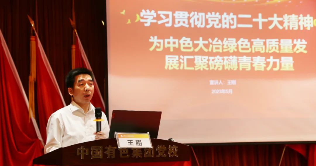 ????宣講人以《學習貫徹黨的二十大精神為 中色大冶綠色高質量發展匯聚磅礴青春力量》為題,從為什么黨的二十大如此重要、黨的二十大報告有哪些新提法、從黨的二十大報告中學什么,以及如何理解黨的二十大報告中關于青年工作的論述、新時代有色青年應該怎么干等五個方面,結合公司實際,深入淺出地講解了如何學習貫徹黨的二十大精神,強化理論武裝、筑牢思想根基,把二十大精神落實到具體行動之中,永遠跟黨走,奮進新征程。