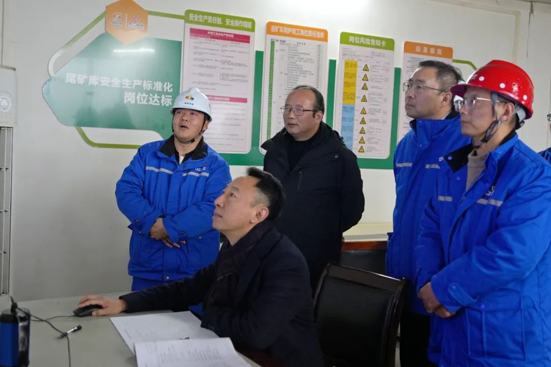 王焱一行來到銅山口礦尾礦庫、智能化綜合管控中心等現場,聽取該礦相關負責人關于尾礦庫安全運行和智能化建設完成情況的匯報,并查看了尾礦庫在線監測及預警系統,重點了解浸潤線動態變化、庫區水位及壩體位移監測、外排水質達標率、排滲系統維護等情況。