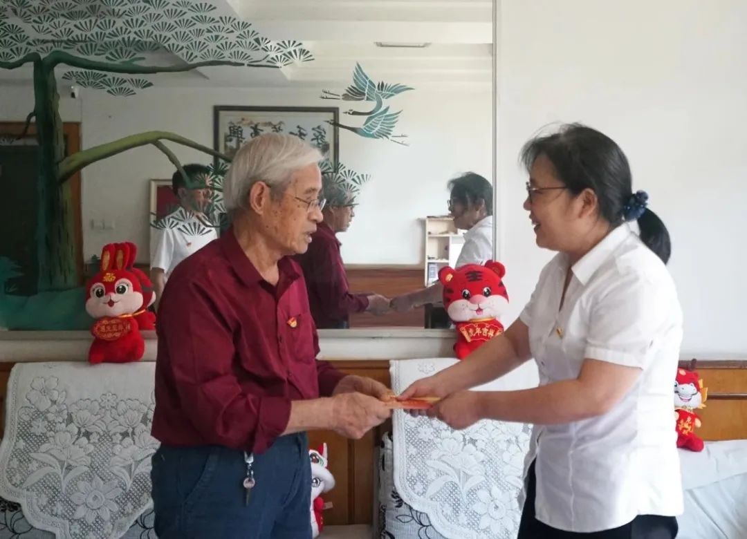 公司黨委書記、董事長胡國斌一行分別看望了老黨員丁崇芝、朱長鳴,詢問他們身體狀況、家庭生活情況及具體訴求,并送上慰問金,表達(dá)組織的關(guān)心與支持。胡國斌傾聽他們講述入黨初心和奮斗經(jīng)歷,感謝他們?yōu)辄h的事業(yè)和公司發(fā)展做出的貢獻(xiàn),強(qiáng)調(diào)老黨員是黨和人民的寶貴財(cái)富,他們用一生踐行著對黨的忠誠與擔(dān)當(dāng),要持續(xù)關(guān)心關(guān)注老黨員的生活,用心用情做好服務(wù)保障工作,讓他們真切感受到黨的關(guān)懷,共享發(fā)展成果,安享幸福晚年。